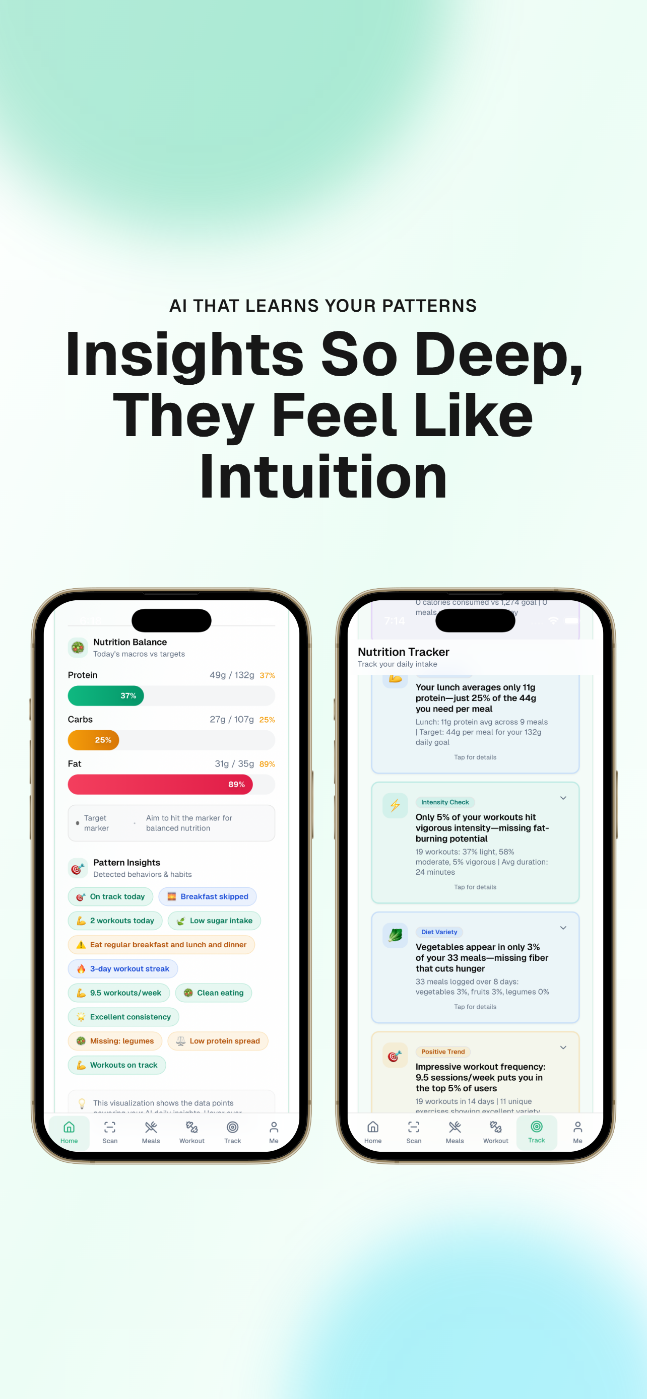 The all-in-one AI companion that goes far beyond scanning. Effortlessly log meals with a photo or text description, get personalized, guided workout & meal plans with adaptive feedback for continuous improvement, and uncover hidden patterns in your habits through deep insights. One app to scan, track, and transform your eating and fitness routine.